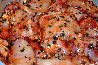 1-Pulpele de pui dezosate se spala bine si se pun intr-un bol incapator impreuna cu toate ingredientele marinadei.