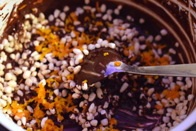 2-Se adauga orezul expandat si coaja razuita de la o portocala si se amesteca totul.
