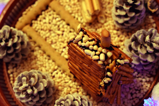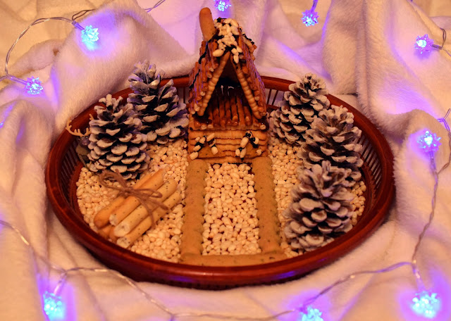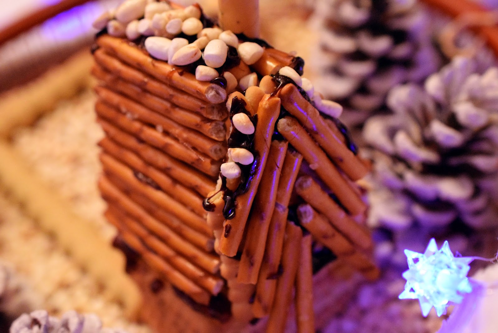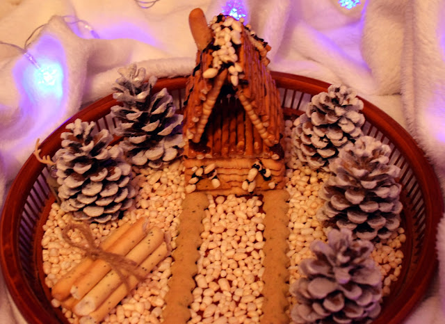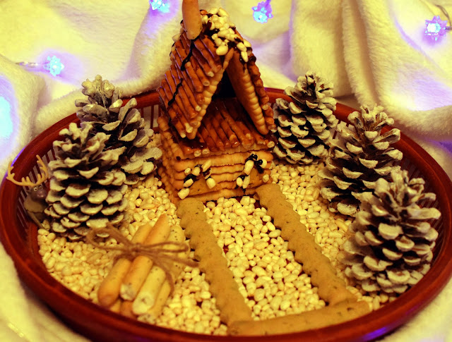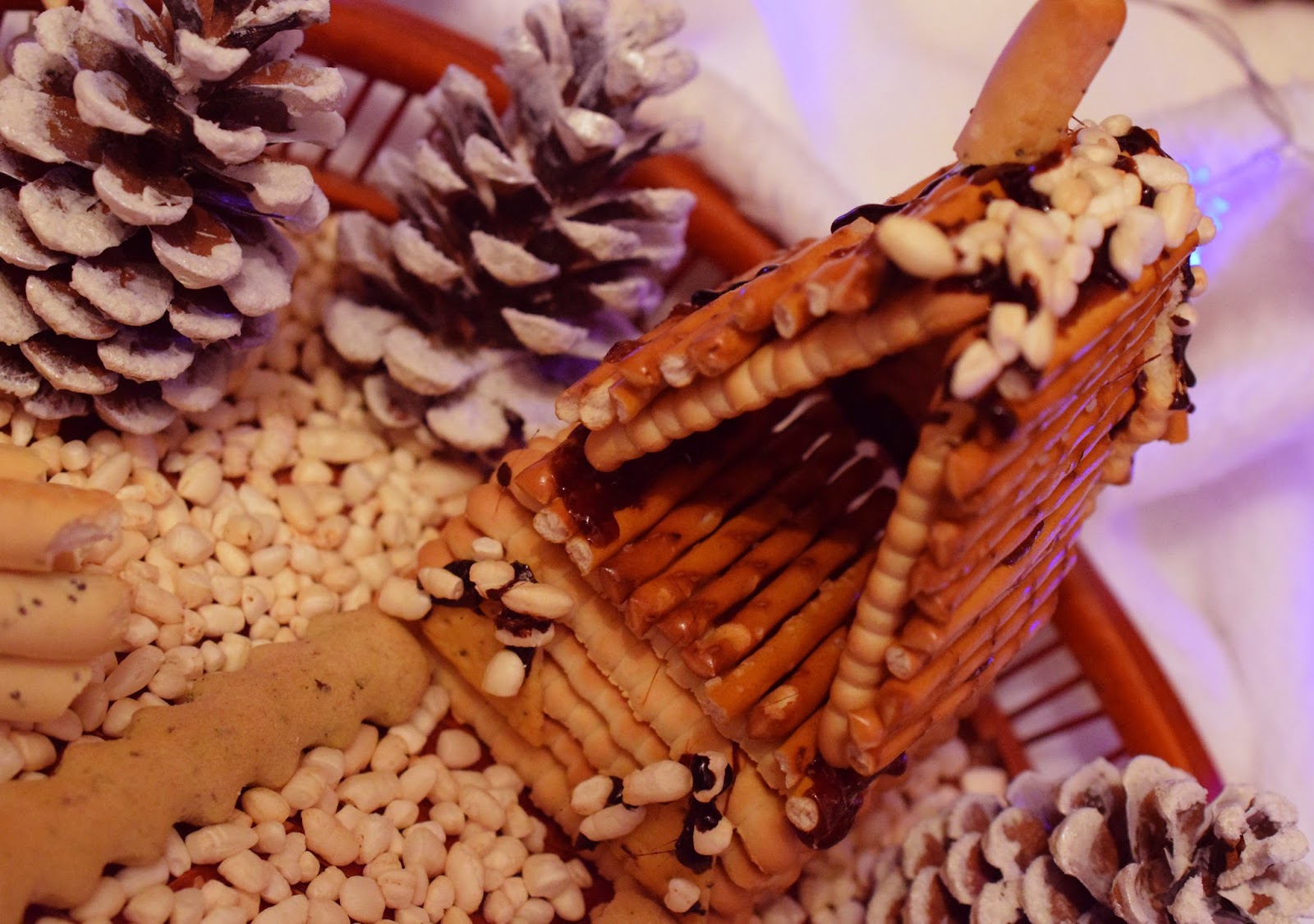6-Gramajoara de lemne din decor este formata din bucati de grisine, aleea din crochete, iar zapada din orez expandat.
