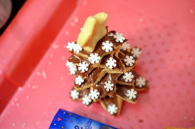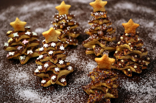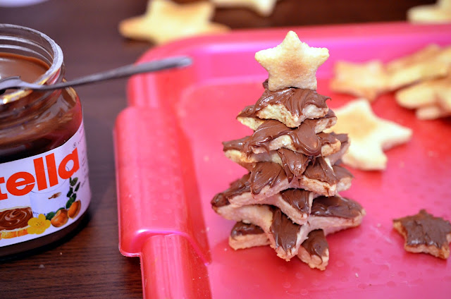 6-Se lasa sa se raceasca, apoi se lipesc stelutele cu Nutella, formand brazii (vezi foto).