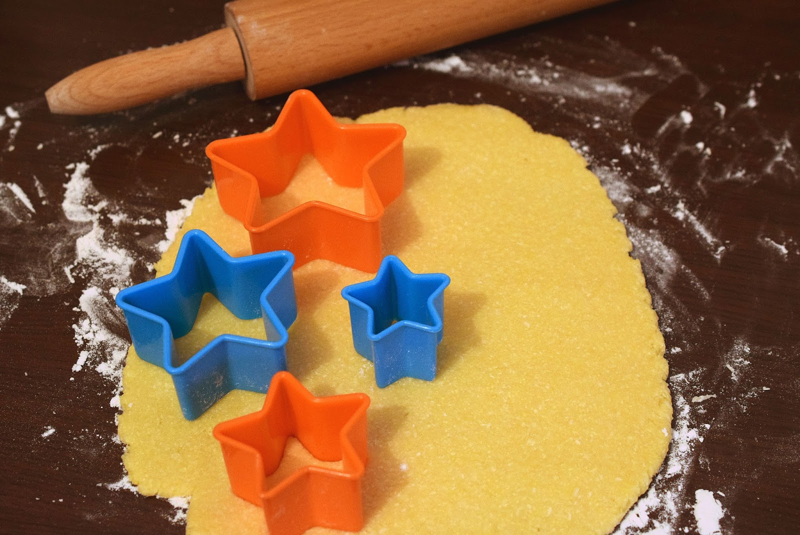 4-Aluatul se intinde pe blatul infainat si se decupeaza stelutele de diferite marimi.
