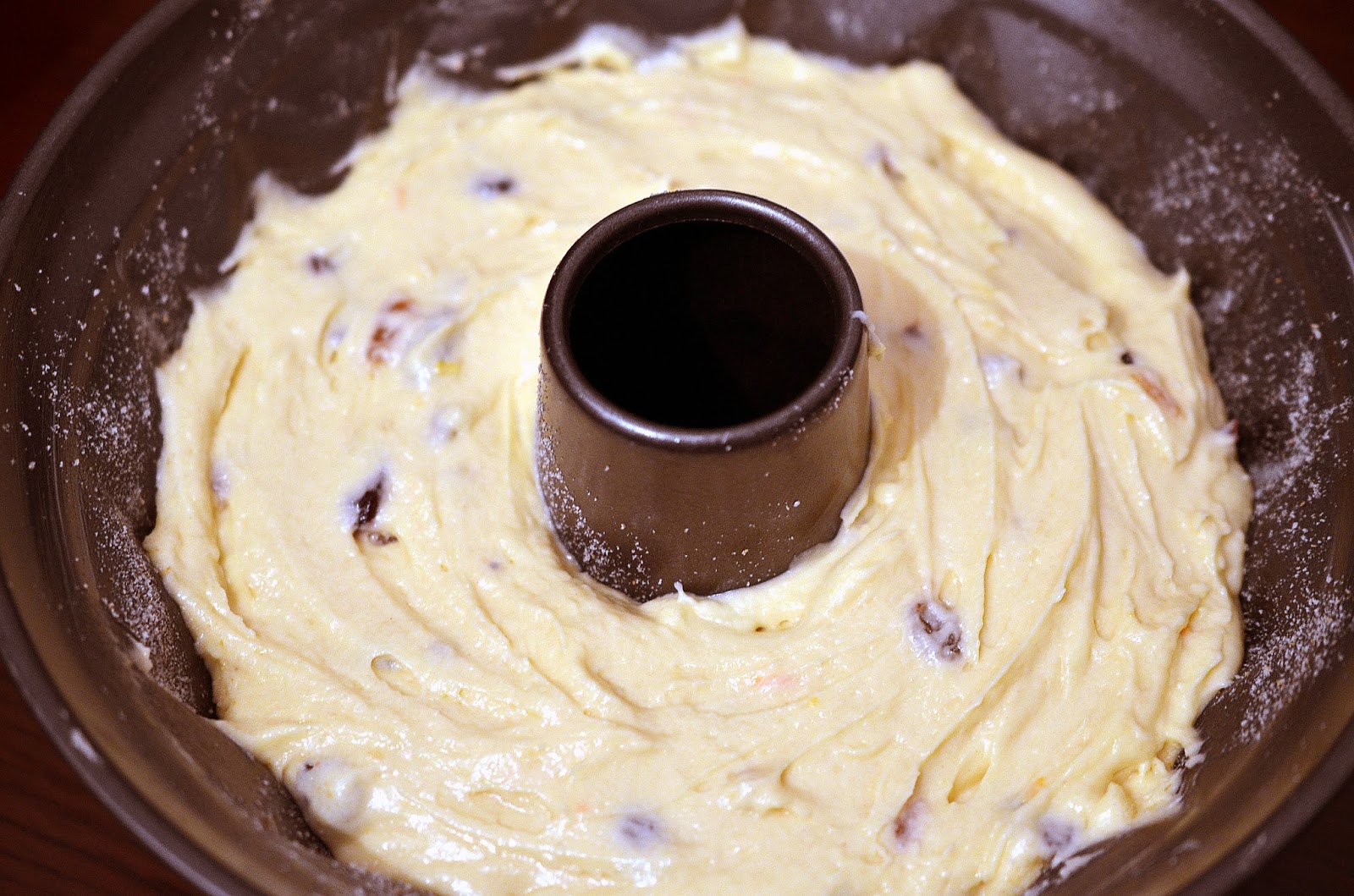 7- Se pune compozitia in forma de guguluf si se da la cuptorul preincalzit la 180 grade, pentru 45-50 minute (timpul de gatire poate varia in functie de dimensiunea formei; se face testul cu scobitoarea).