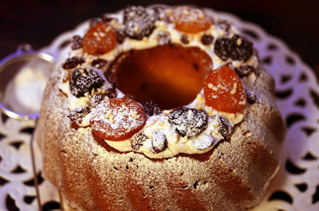 5- Se adauga vanilia, scortisoara, nucsoara, esenta de ron, fructele uscate si nucile si se omogenizeaza amestecul.