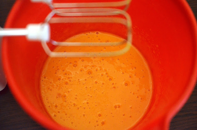 2-Se toarna uleiul, aproximativ 50 ml dintr-o data, si se mixeaza pana la incorporarea completa de fiecare data.