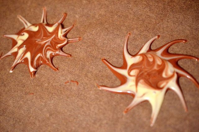 1-Prima data pregatim ornamentele de ciocolata: ciocolata alba si cea cu lapte se topesc la bain-marie (separat, bineinteles).