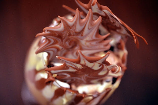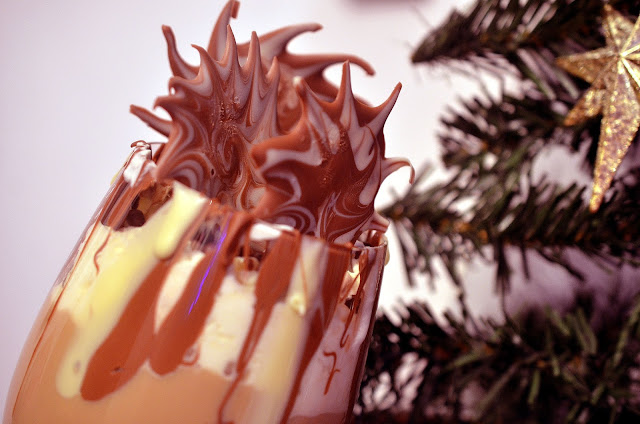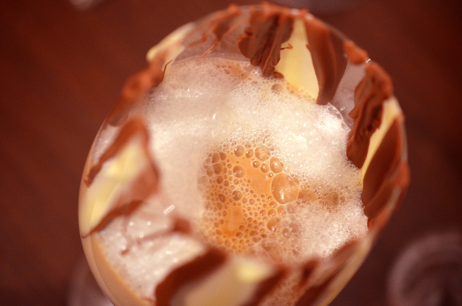 5-Cu restul de ciocolata topita decoram interiorul paharului in care se va servi bautura (vezi foto, voi poate reusiti o decorare mai fotogenica…) si se lasa la rece sa se intareasca putin.