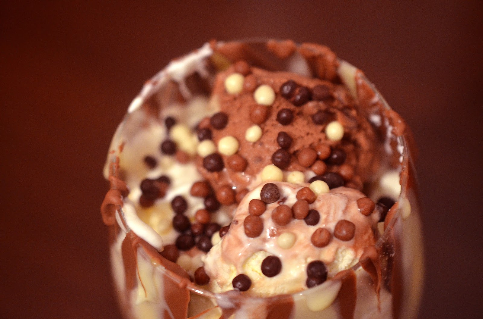 12-Se pun celelalte doua globuri de inghetata, bomboanele decor si deasupra lor ornamentele de ciocolata (luate direct din frigider).