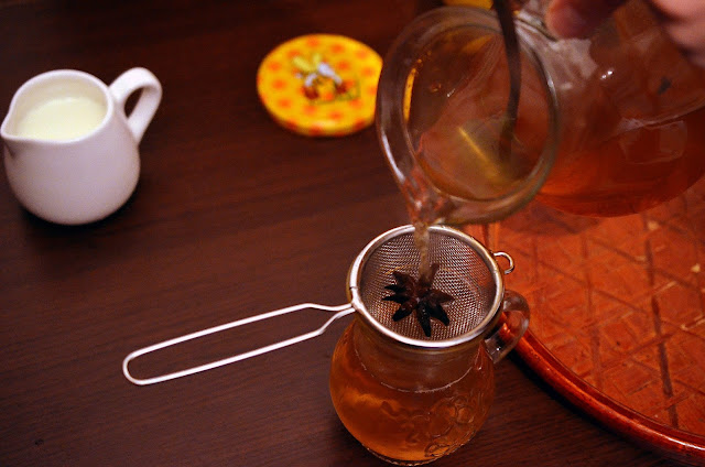 De precizat: am folosit ce aveam in casa la acest ceai, dar se mai pot adauga si alte arome in armonie: cardamon, boabe de piper, pliculet de ceai negru, vanilie.