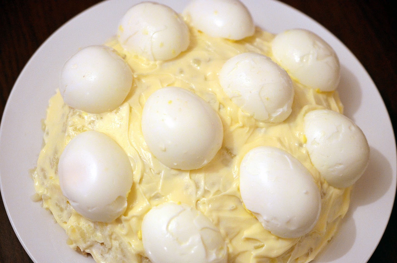 7-Se pun jumatatile de oua cu partea cu umplutura spre interior.