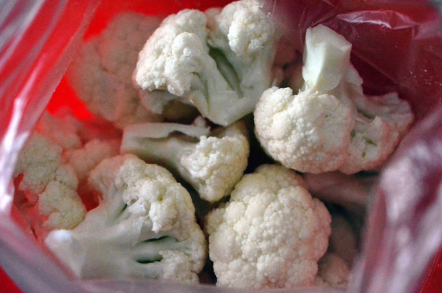 2-Conopida se desface in buchetele, se spala si se pune intr-o punga (din cele care se folosesc pentru congelator), impreuna cu 2 linguri de ulei. Punga se inchide si o scuturam, astfel incat uleiul sa imbrace toate buchetelele de conopida.