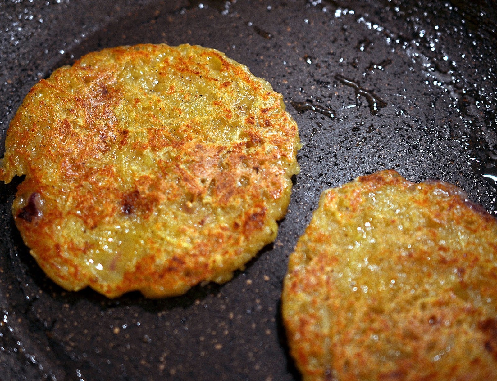 3-Se aseaza cu lingura in tigaie si se prajesc in putin ulei, la foc mediu.