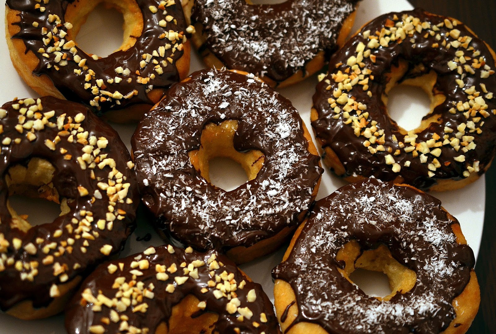 8-Cand incep sa se raceasca se pot decora cu ciocolata topita la bain-marie ( sa fie mai fluida ciocolata) si se presara fulgi de cocos si migdale maruntite si prajite.
