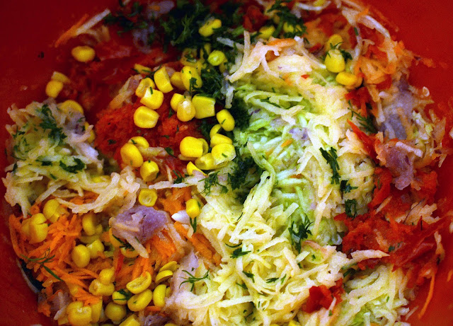 In cazul in care compozitia va iese usor fluida (depinde de cantitatea de legume), mai adaugati faina, cate putin.