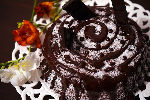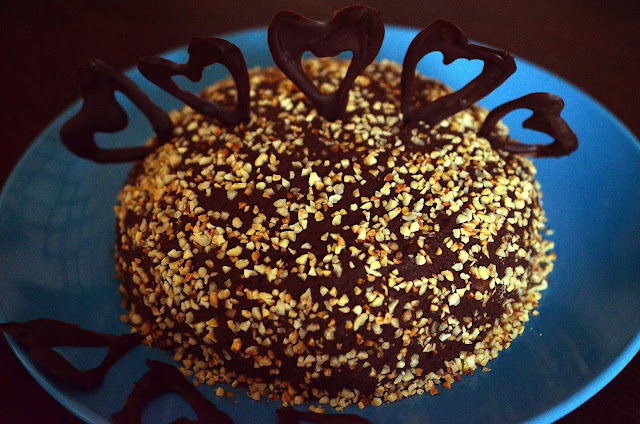 L-am facut pentru aniversarea unuia dintre copii, in martie, post fiind, si noi am fost multumiti de rezultat. Bineinteles, chiar daca este de post, nu are margarina! La o prima lecturare a retetei, poate parea complicata, dar nu e asa, se face destul de repede, doar sa aveti totul pregatit! Iubitori de ciocolata, nu o sa simtiti lipsa untului, a laptelui etc., promit! Sursa inspiratiei aici.